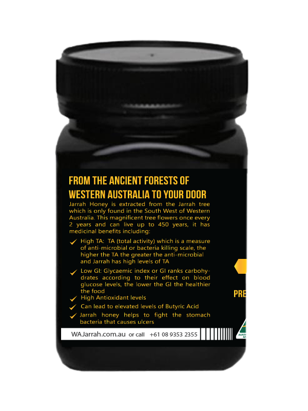 Jarrah honey is extracted from the Jarrah tree (Eucalyptus marginata) which is only found in the Southwest of Western Australia and can live up to 400 years.